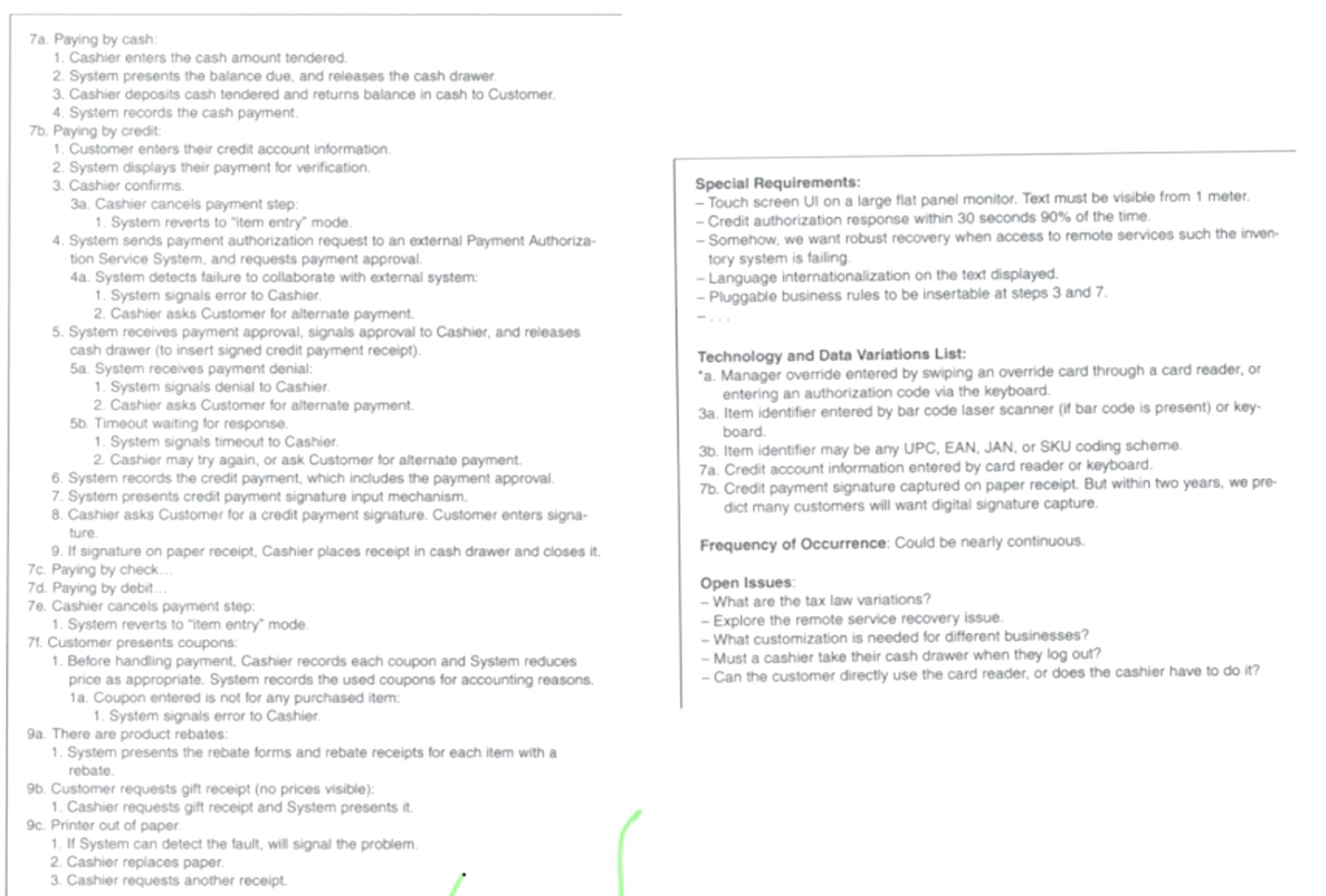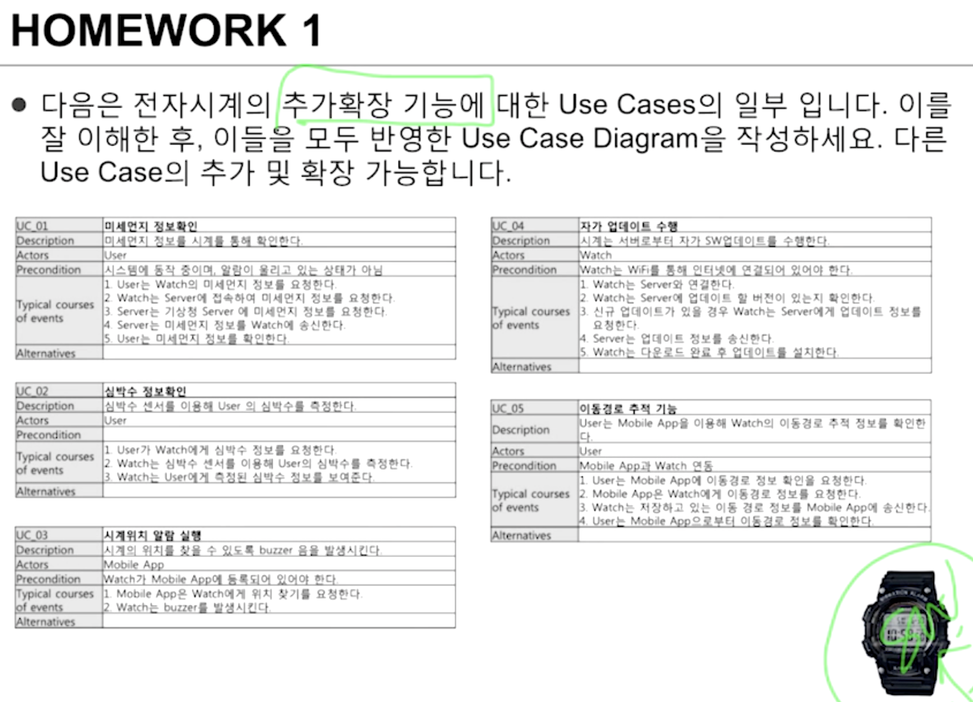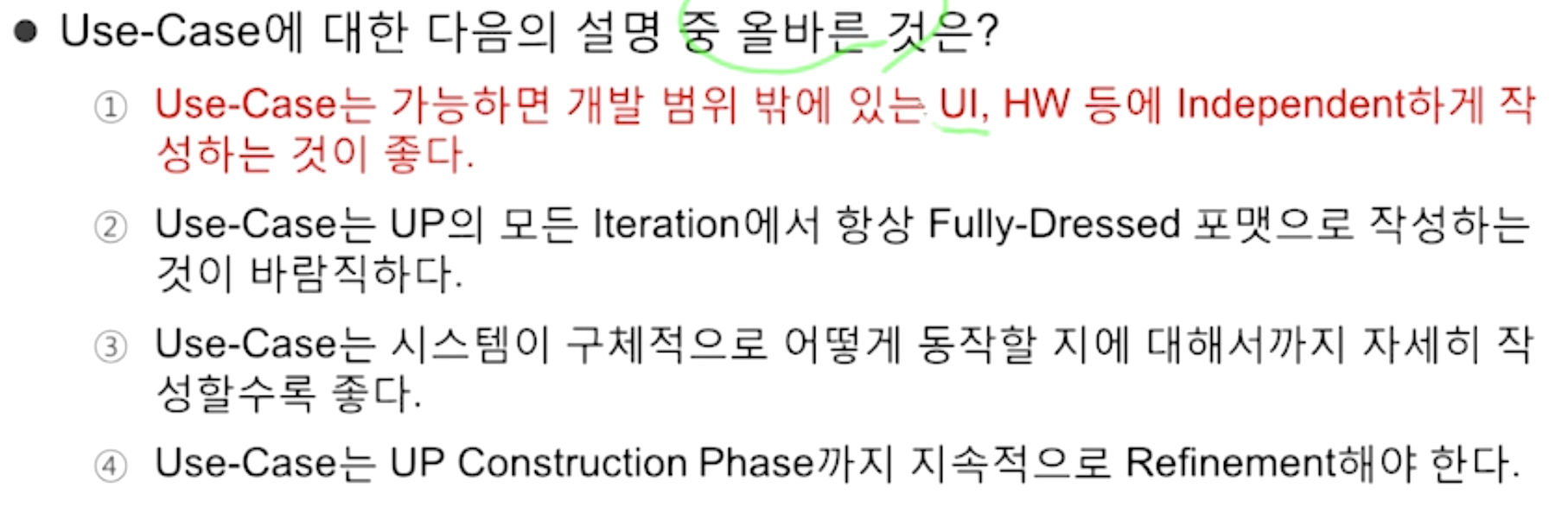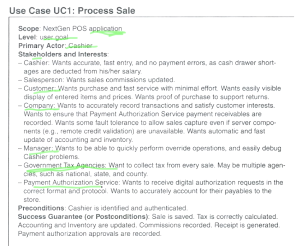 - Main Success(가장 많이 발생. 큰 길), Alternate(자주 발생하지 않지만 목표가 동일. 샛 길) 시나리오 나눠서 작성