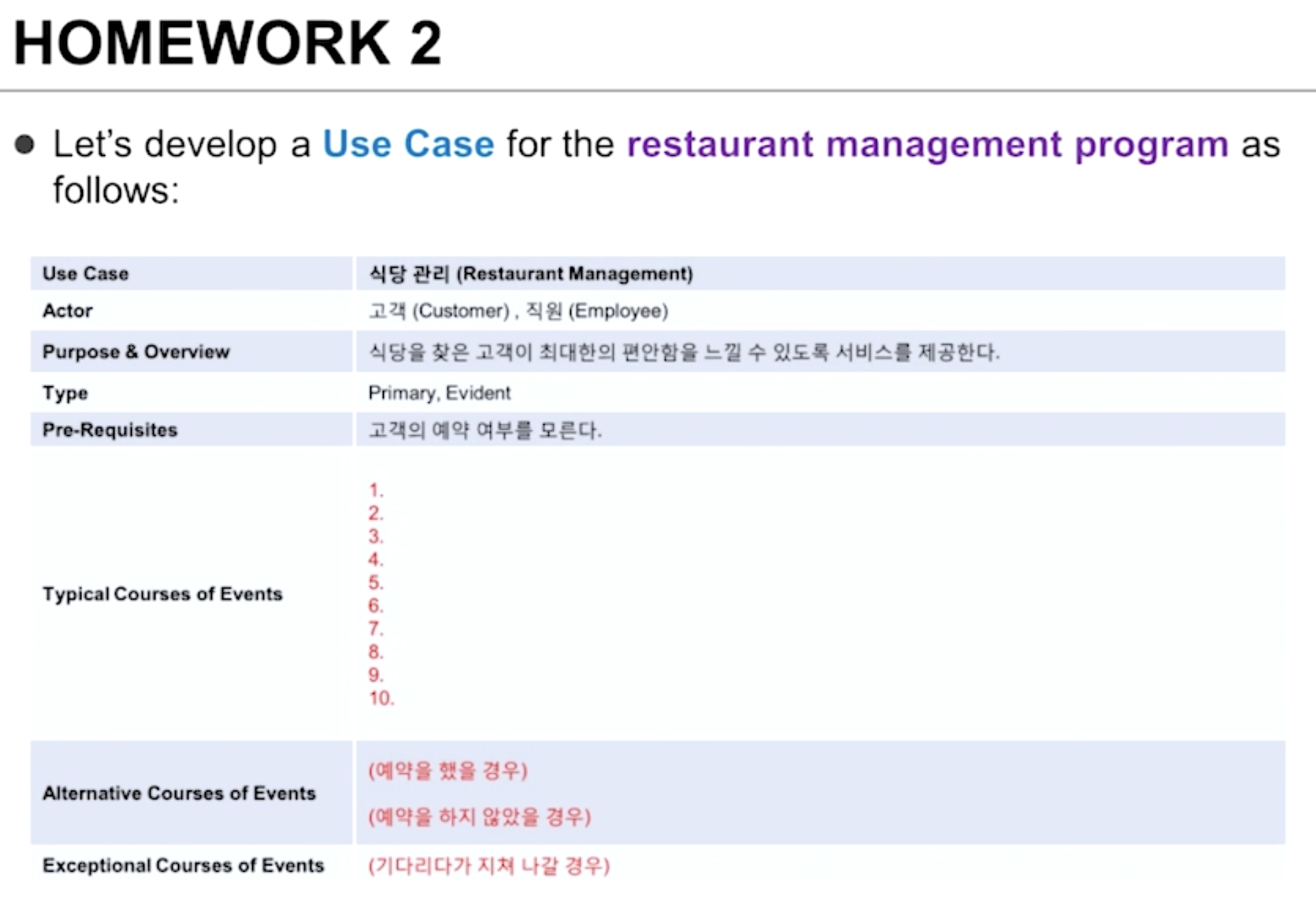 - Exceptional (예외 발생) 시나리오도 optional하게 작성