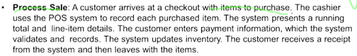 - 목표를 충족시키기 위해 시스템을 사용하는 사용자들의 text stories (시나리오)