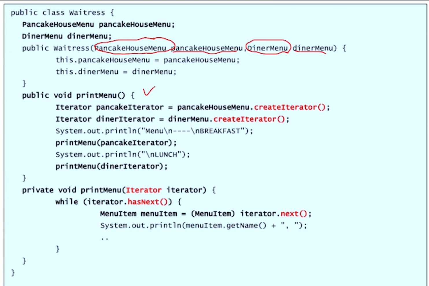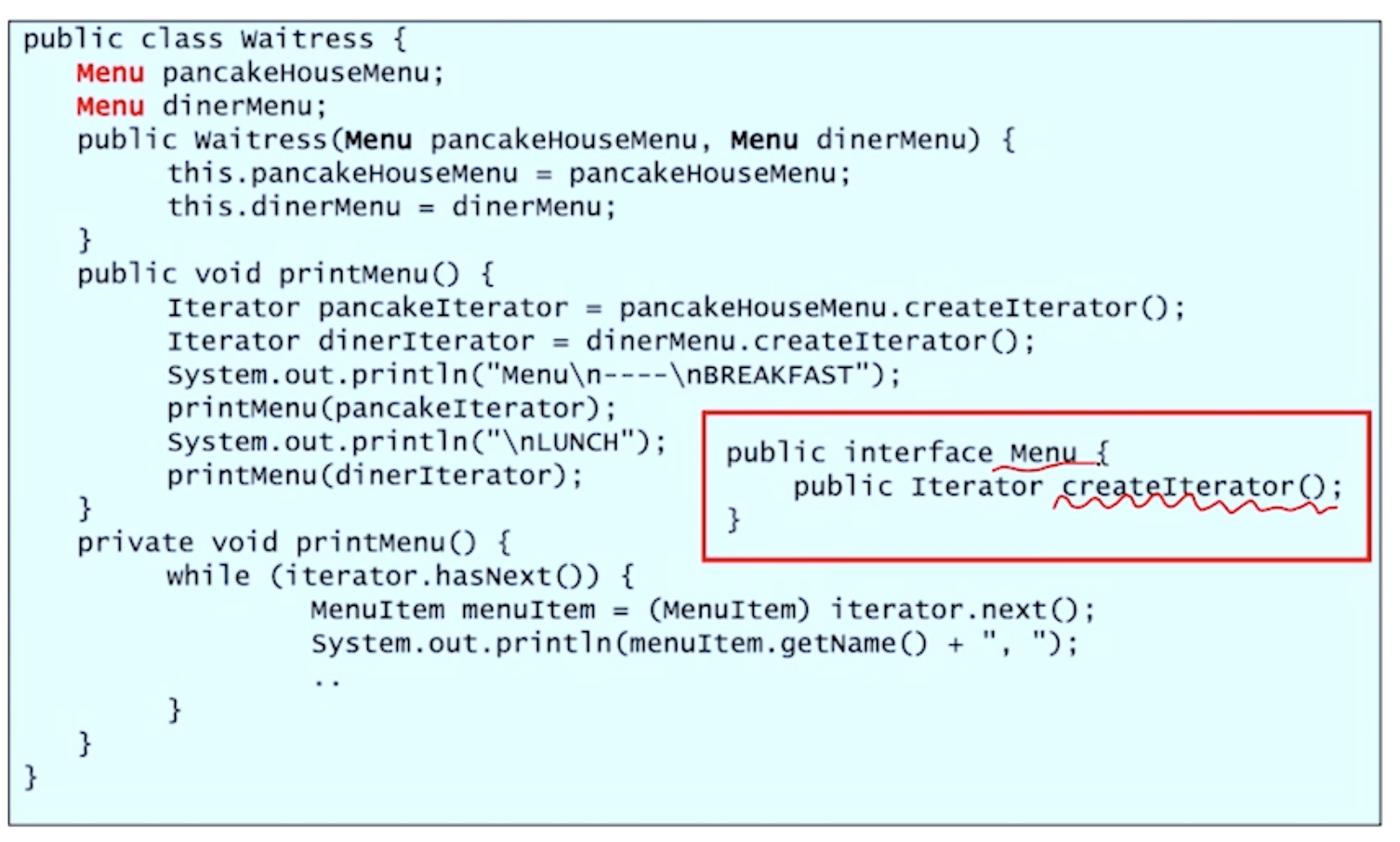 interface Menu를 이용해서 Waitress가 레스토랑 타입을 직접적으로 알 필요가 없어진다.