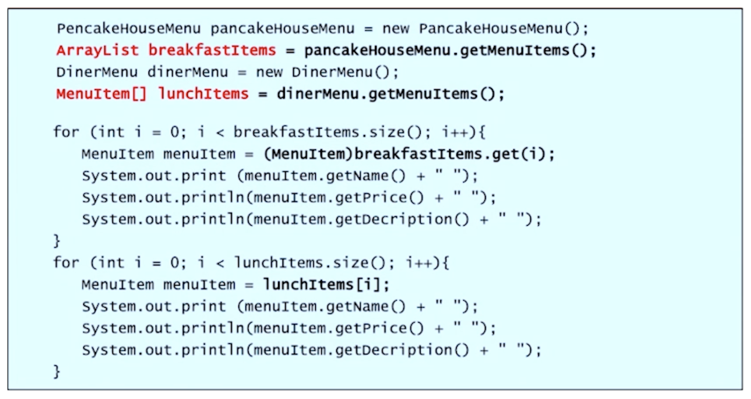 또한 한 레스토랑의 메뉴리스트 자료 구조가 변경되면, 많은 코드를 수정해야 한다.