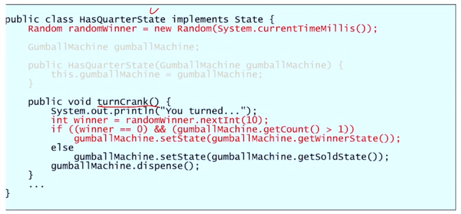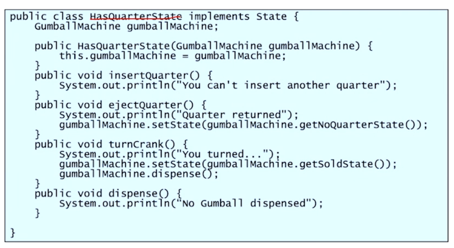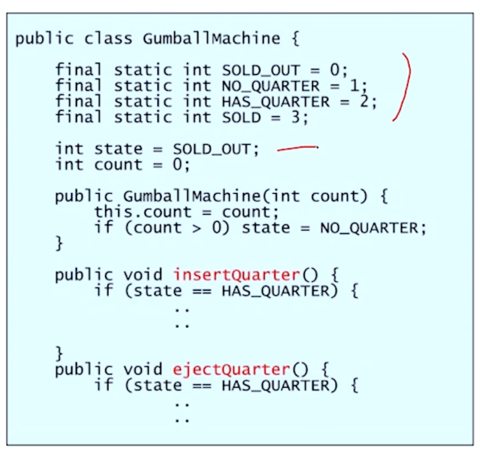 이벤트 함수인 insertQuarter(), ejectQuarter()에서는 현재 상태에 따라 다르게 반응해야하기 때문에
