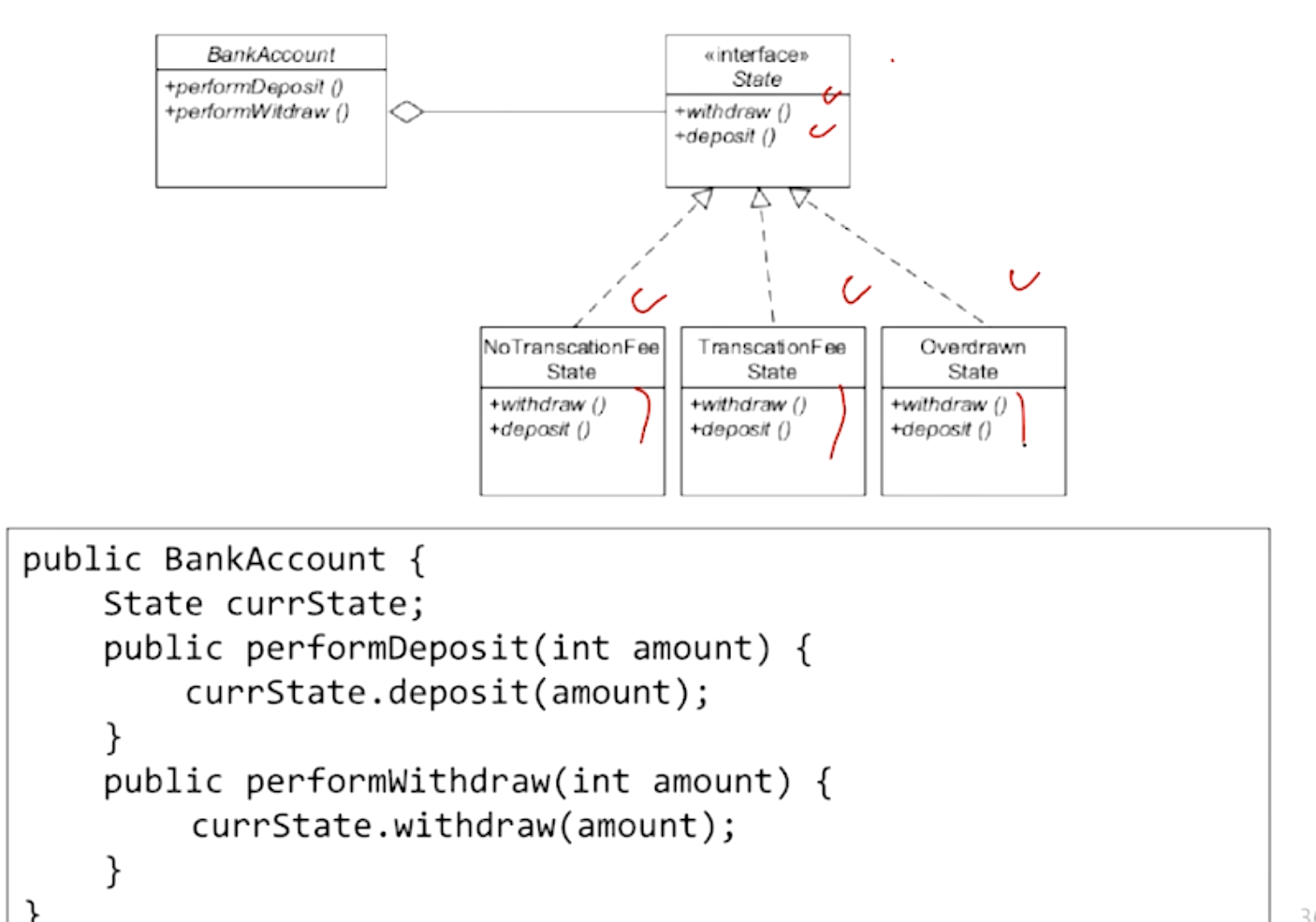 위 코드에서 분기문을 제거하고, 대신 state별로 class를 만들어 state object에 delegate한다.