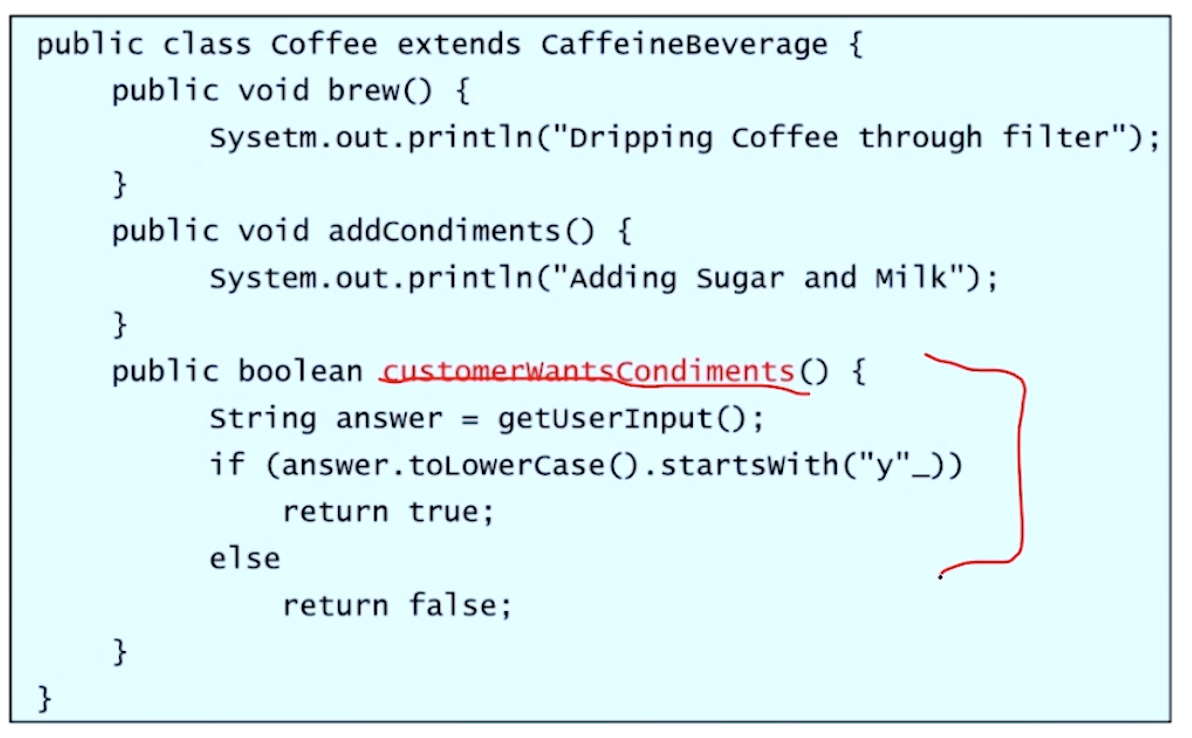 Hook Method는 하위 class에서 step을 조정할 수 있는 방법이다.
