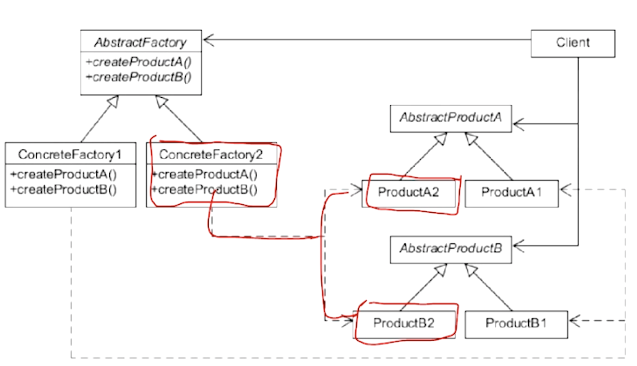 client는 abstractFactory, abstractProduct에만 접근(Interface만 사용)하여 concrete class들이 변경되어도 client 코드에 영향을 주지 않는다.