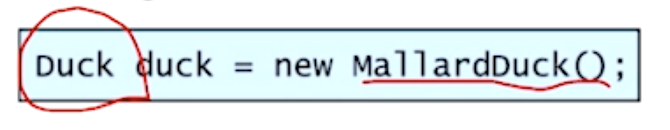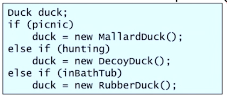 하지만 이 client는 concrete class명(MallardDuck, DecoyDuck, RubberDuck...)에 dependency를 가지게 된다.