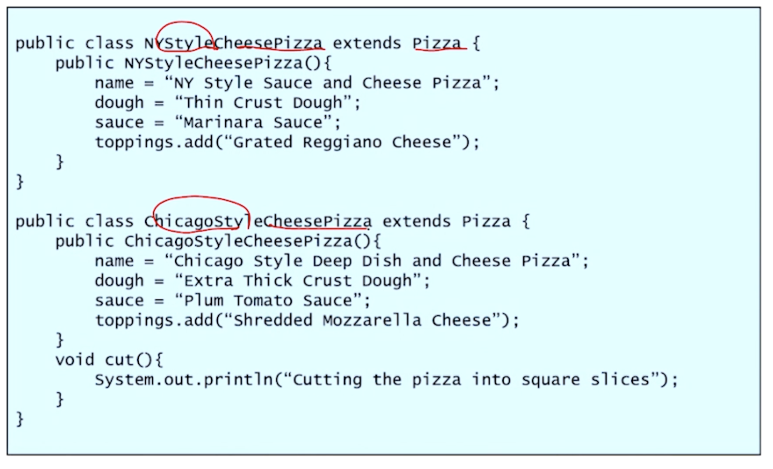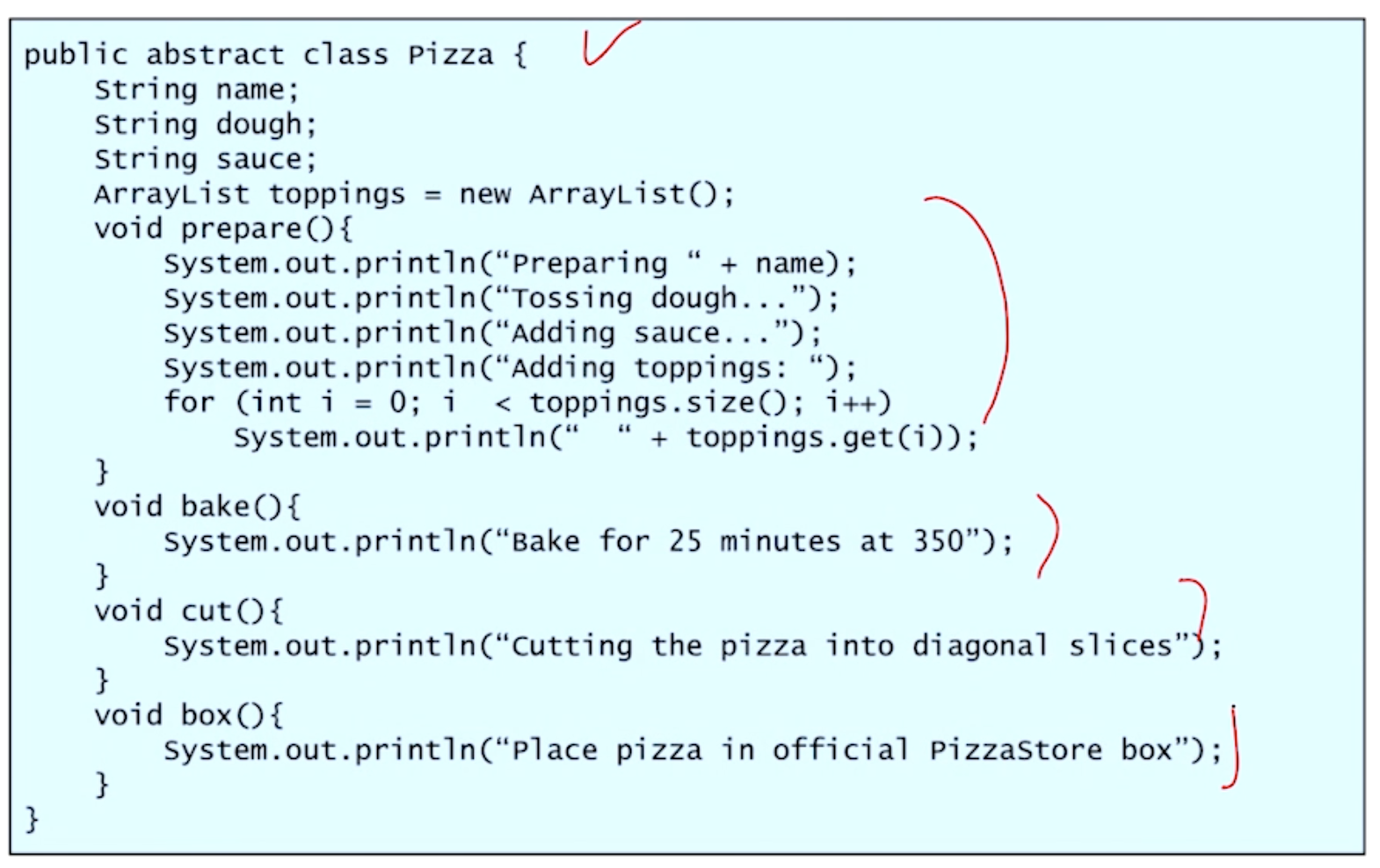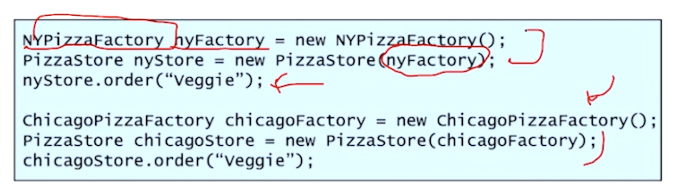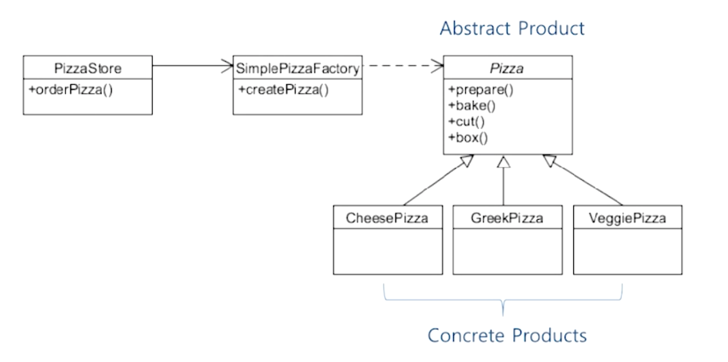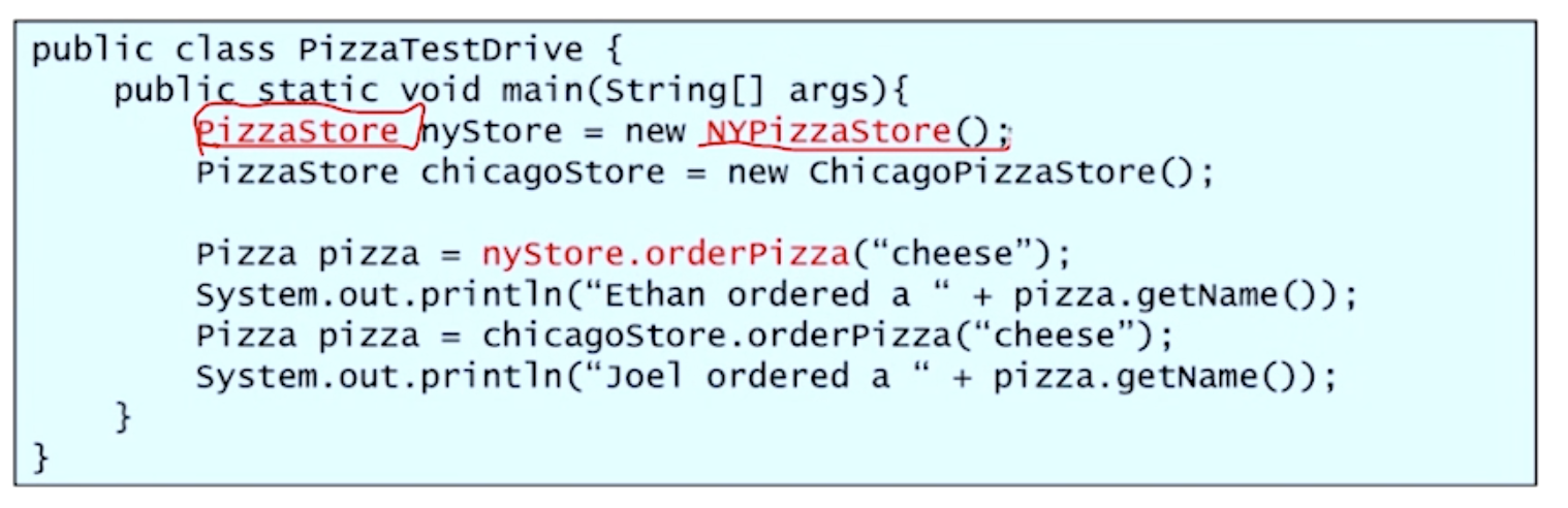 PizzaStore가 직접적인 영향을 받지 않기 위해 Pizza라는 abstract class가 필요한다.