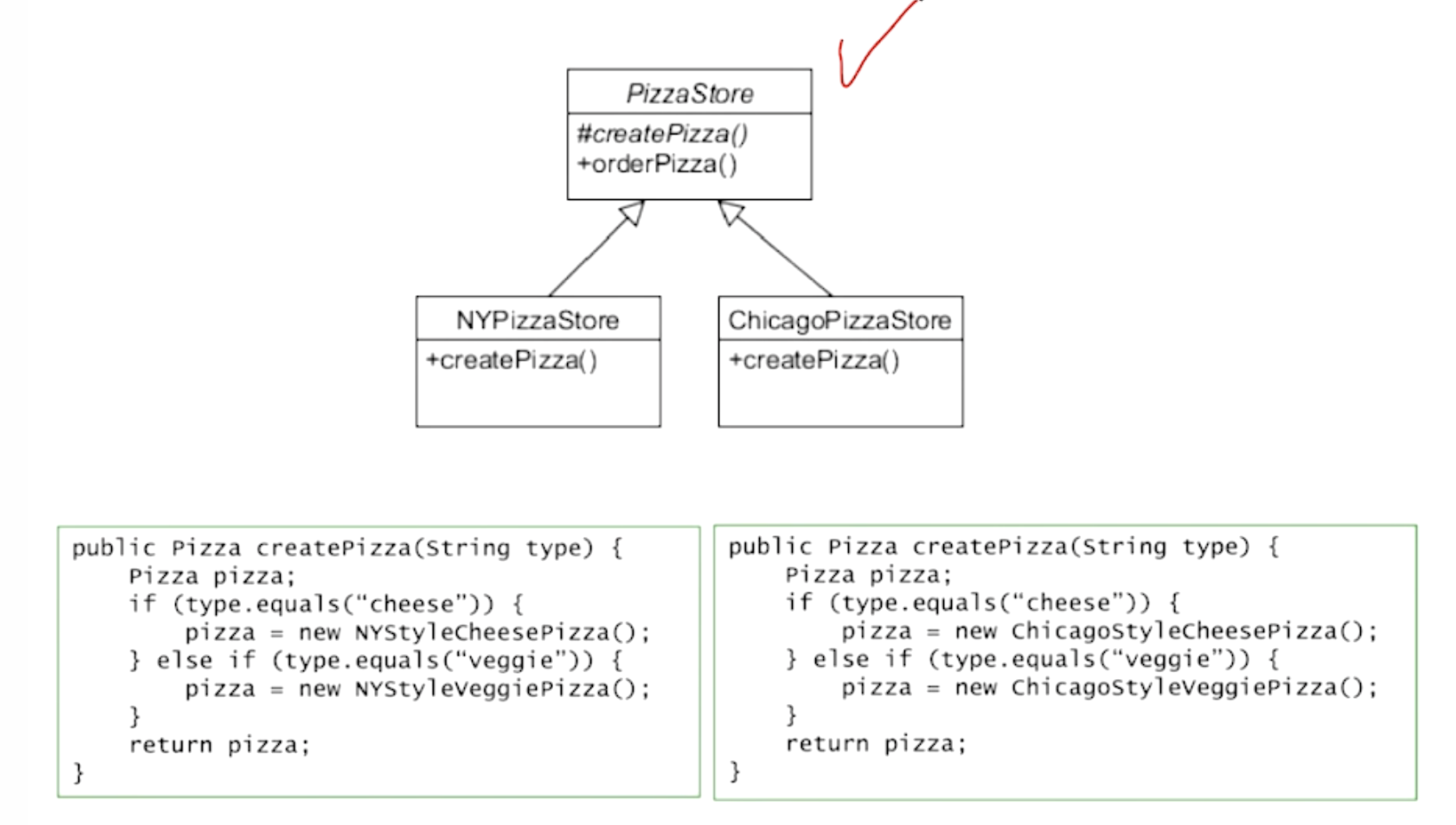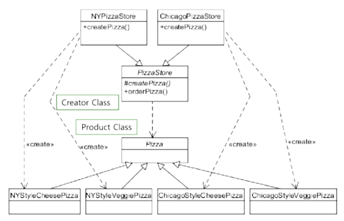 createPizza를 abstract method로 생성하여 하위 class가 생성할 수 있게 만든다.