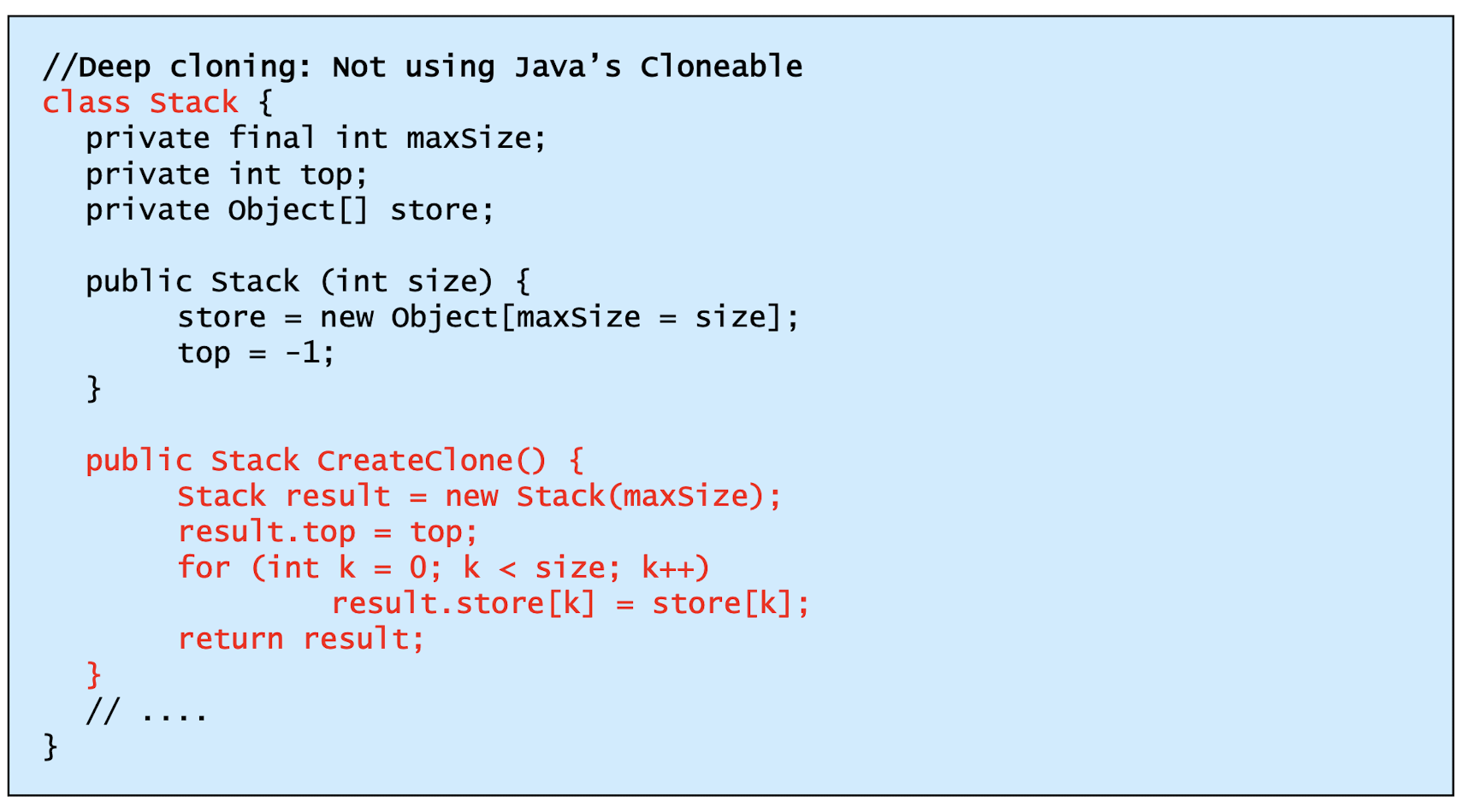 예시 3 - Deep (Java cloneable interface 이용 X)