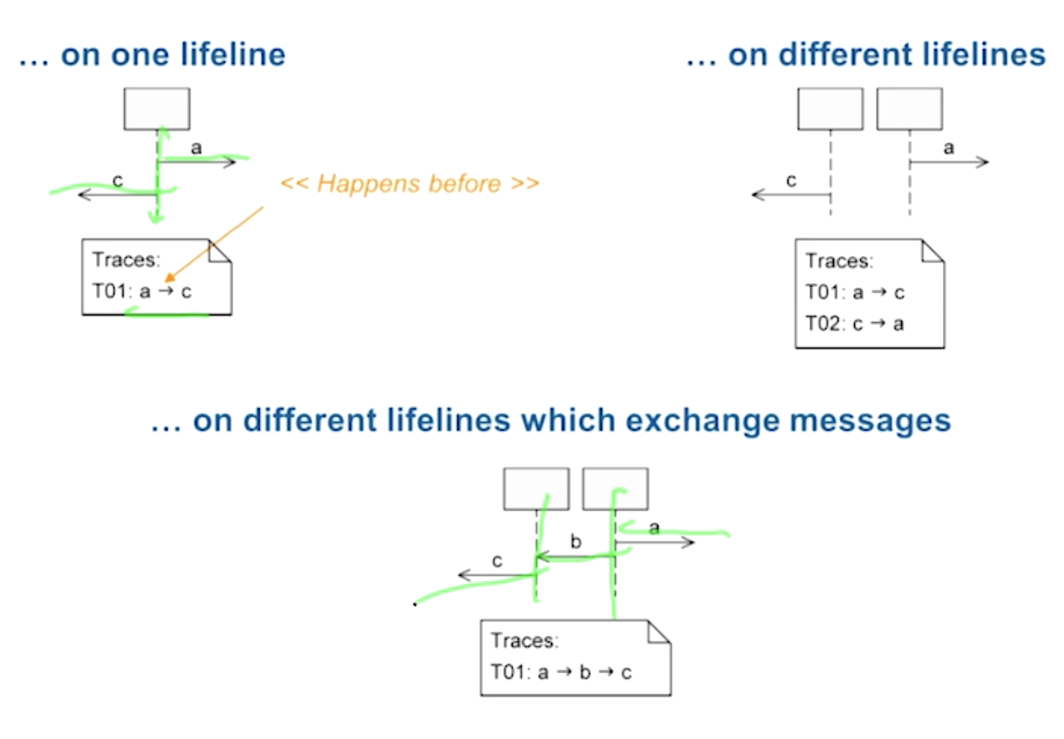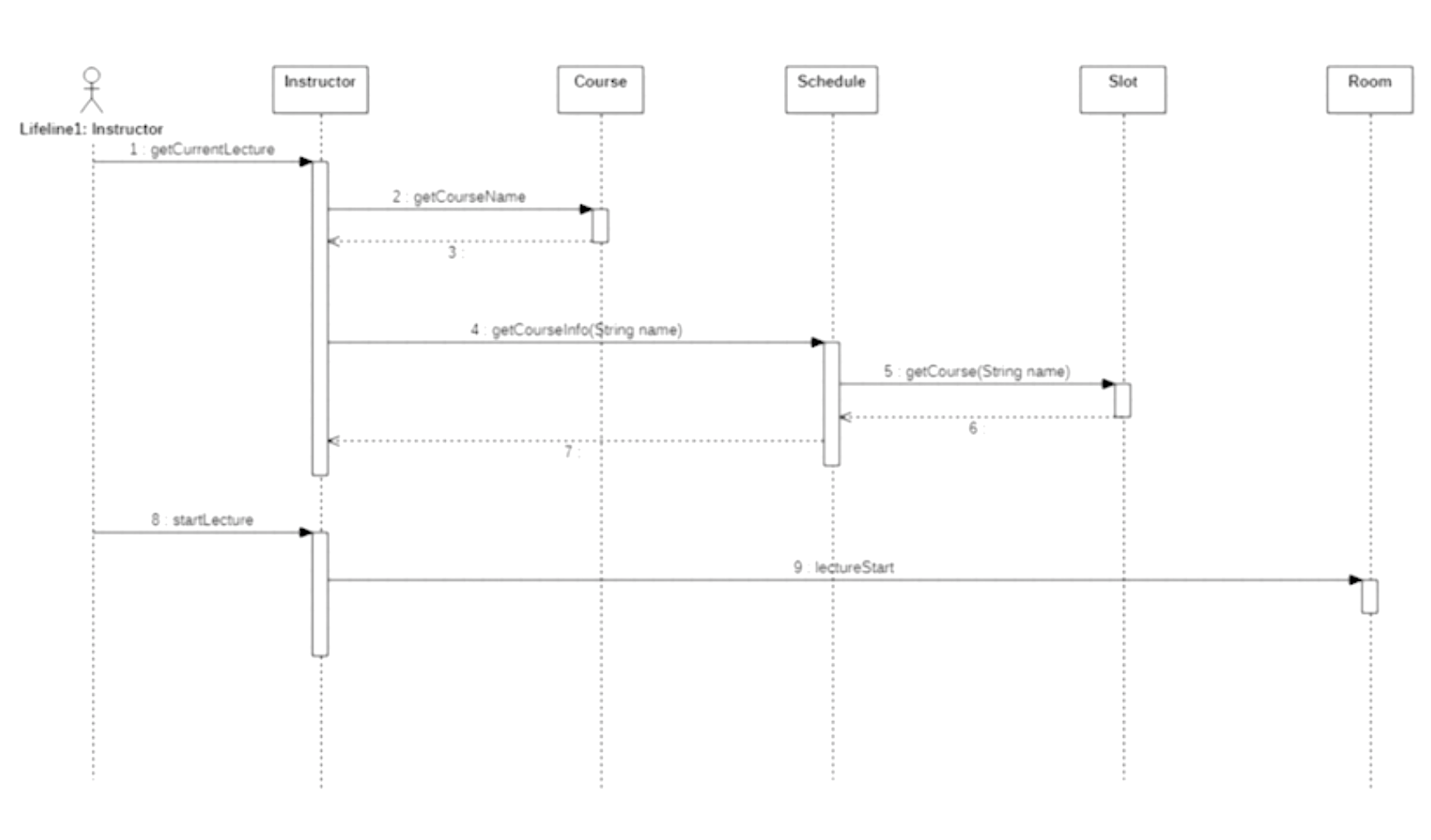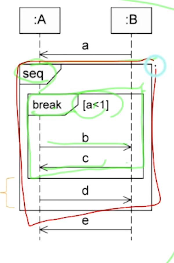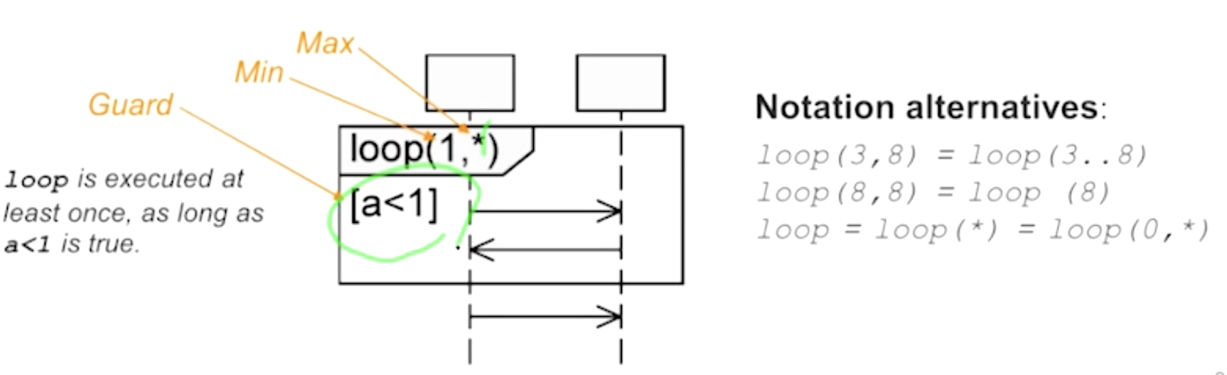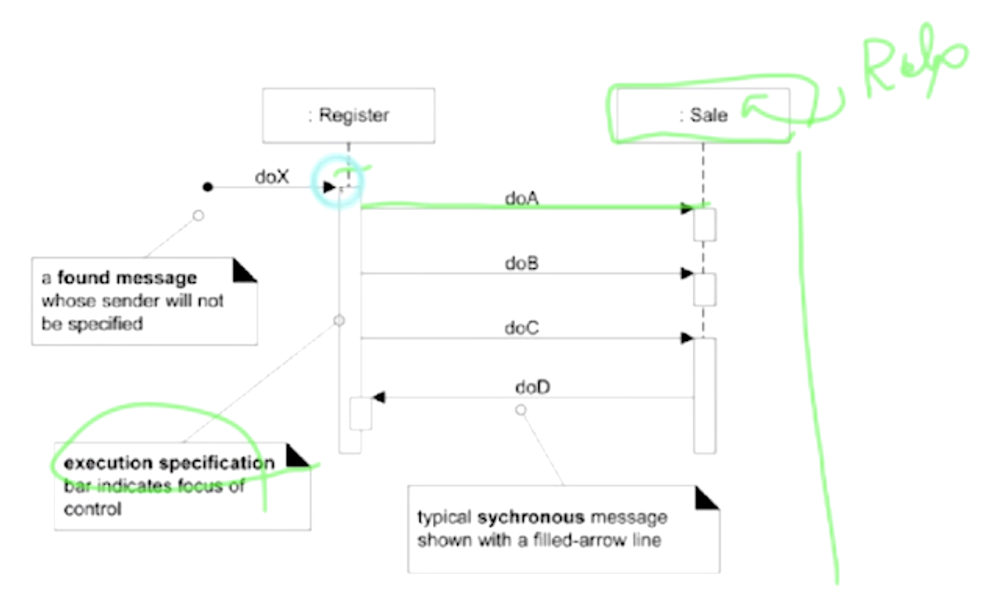 - Lifeline boxes and lifelines : object, class, subsystem, component 등