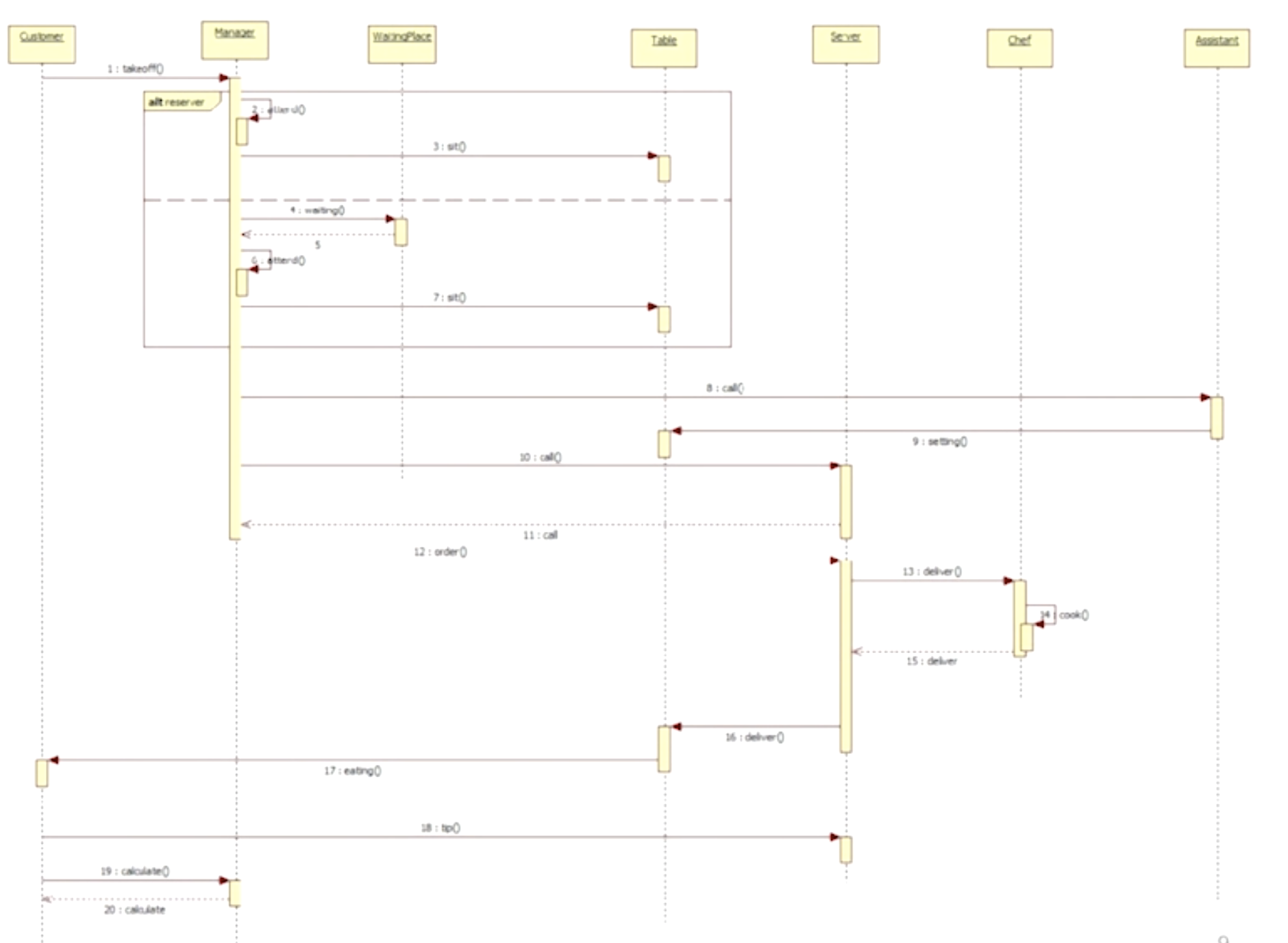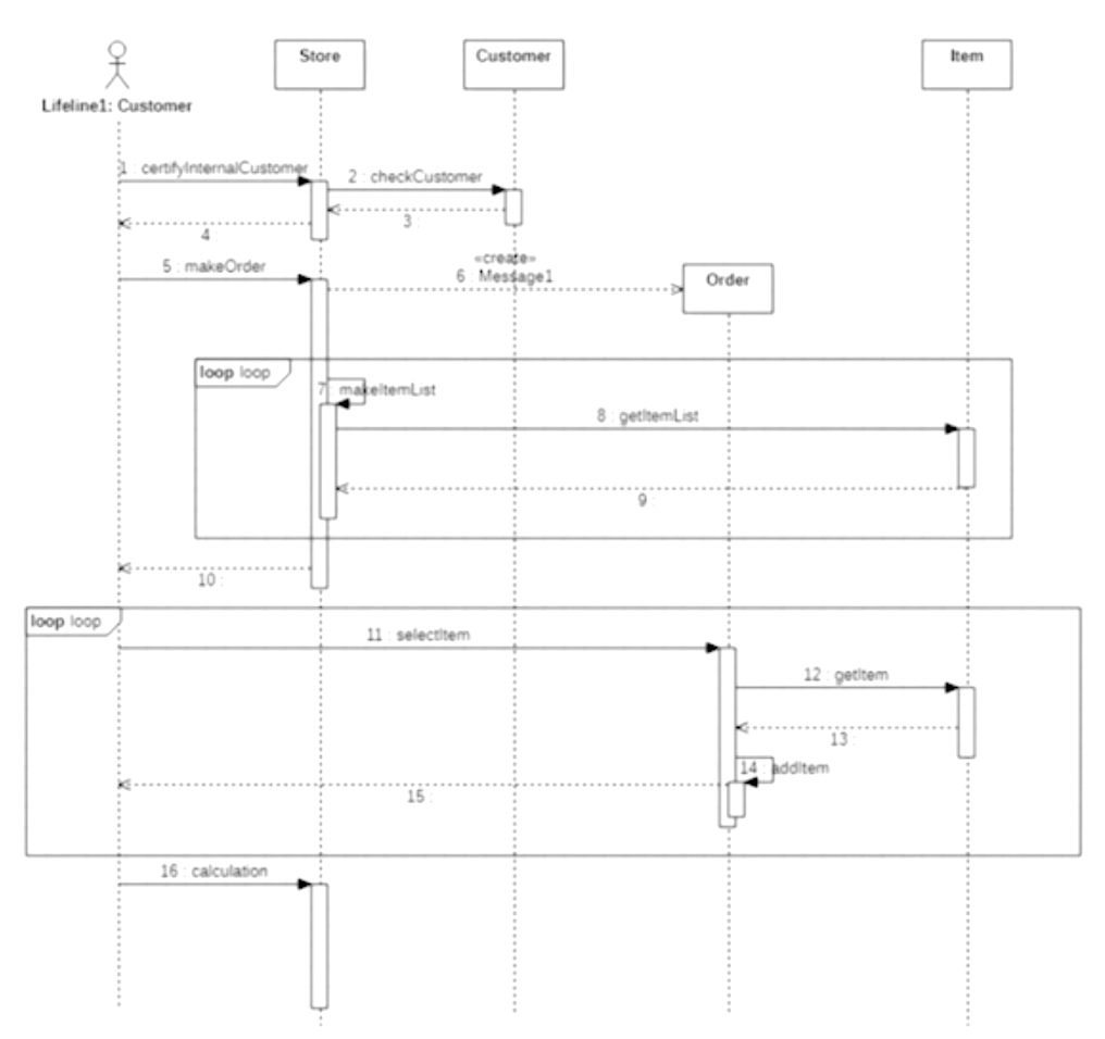 - Communication diagram : 시간 흐름보다 객체의 상호작용을 집중하여 보여줌