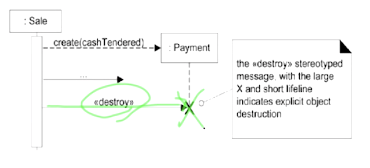 <<destory>> 메시지를 작성하고 Lifeline에 X 표시