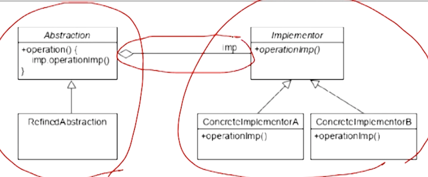 Abstraction과 Implementation을 decoupling시켜서 Abstract나 Implementation의 확장이 서로 영향을 미치지 않도록 하는 패턴