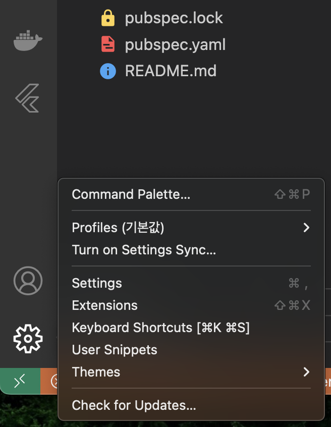 vscode 좌측 하단의 톱니바퀴 아이콘을 눌러 Settings에 들어간다.