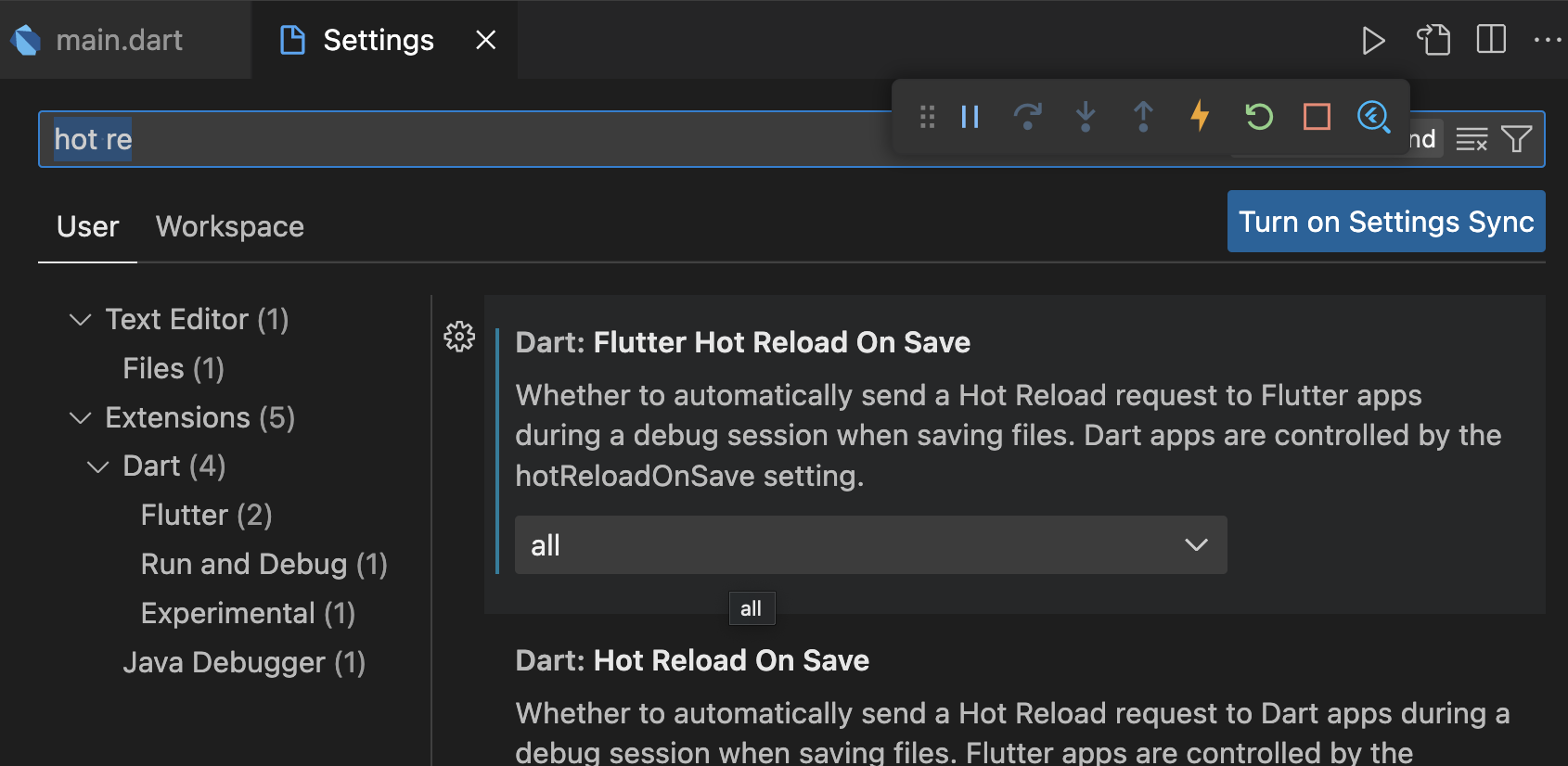 Flutter Hot Reload On Save 설정을 all로 변경해주면 해결!